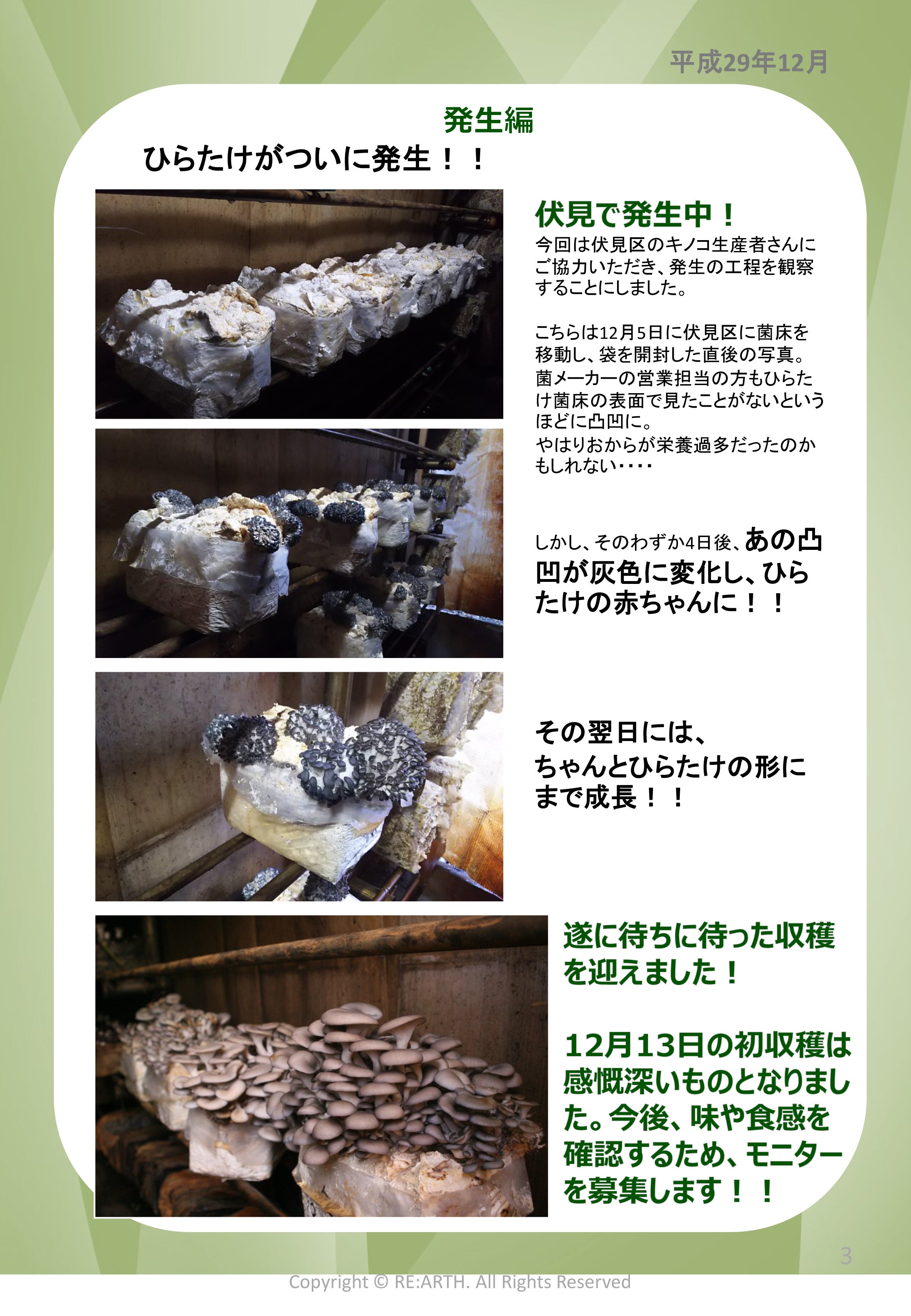そして2017年の実験で、やっとヒラタケの栽培に成功しました!!