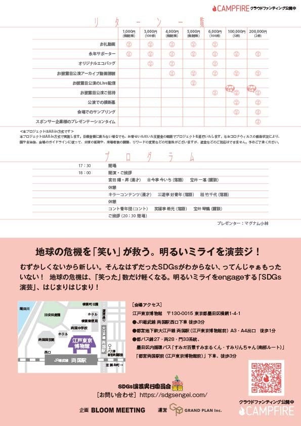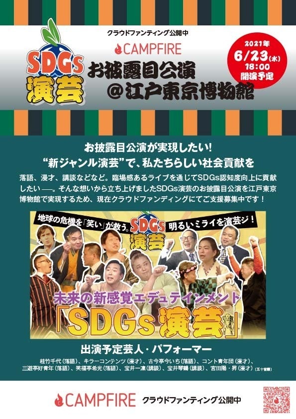 本日はSDGs演芸のお披露目公演のチラシをアップいたします。公演日、プログラムをご確認いただけます。なお、演者の出演順は変更の可能性がございます。確定後活動報告にて告知させていただきます。ご了承ください。