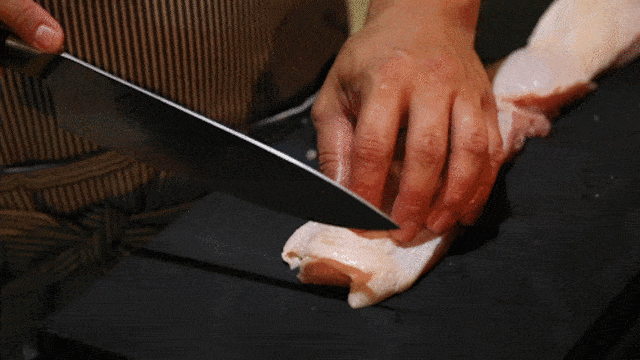 切れ味のいい包丁でスパッと切れることで、素材の繊維や細胞を壊さず、切り口の表面がなめらかになります。また、鮮度が落ちずに素材の旨味を生かすことができ、舌触りもよくなります。