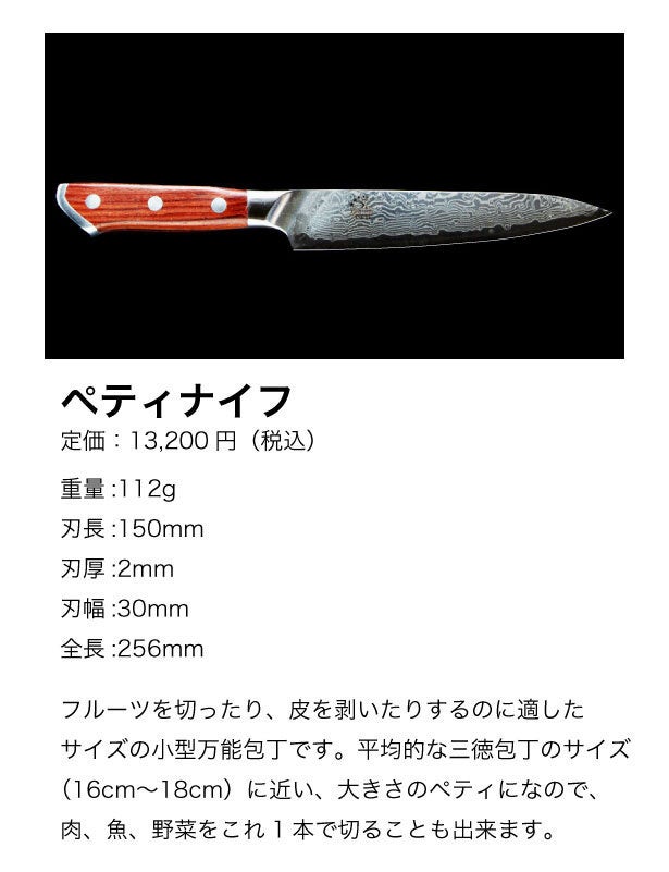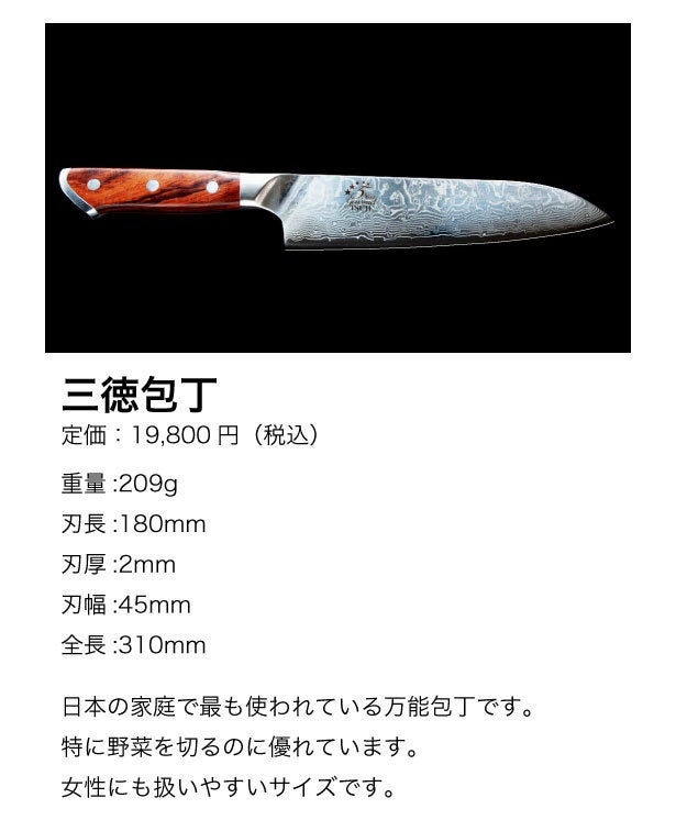 その第2弾として、料理で一番大事な包丁「5 Star Gourmet TSUJI 包丁S63」として販売をすることになりました。