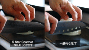 5 Star Gourmet TSUJI 包丁S63は、無駄な力をいれずに包丁の重さだけで、食材を切ることが出来ます。