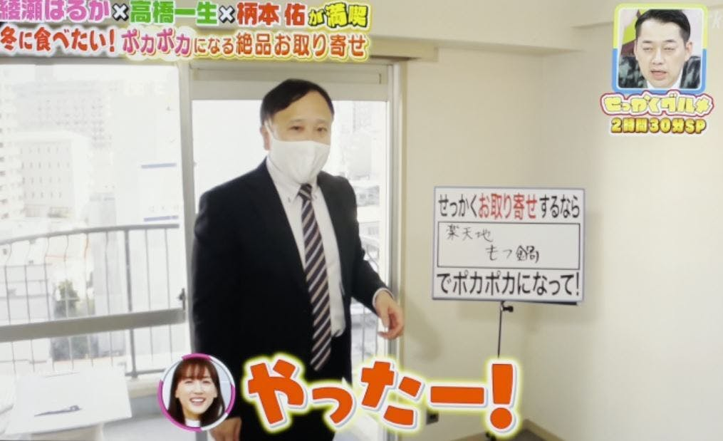 ご招待した医療従事者のひとりである後藤さんが「バナナマンのせっかくグルメ!」という番組のお取り寄せ特集に、感謝の気持ちを込めて楽天地のもつ鍋を推薦し、思いが伝わり採用され紹介していただきました。
