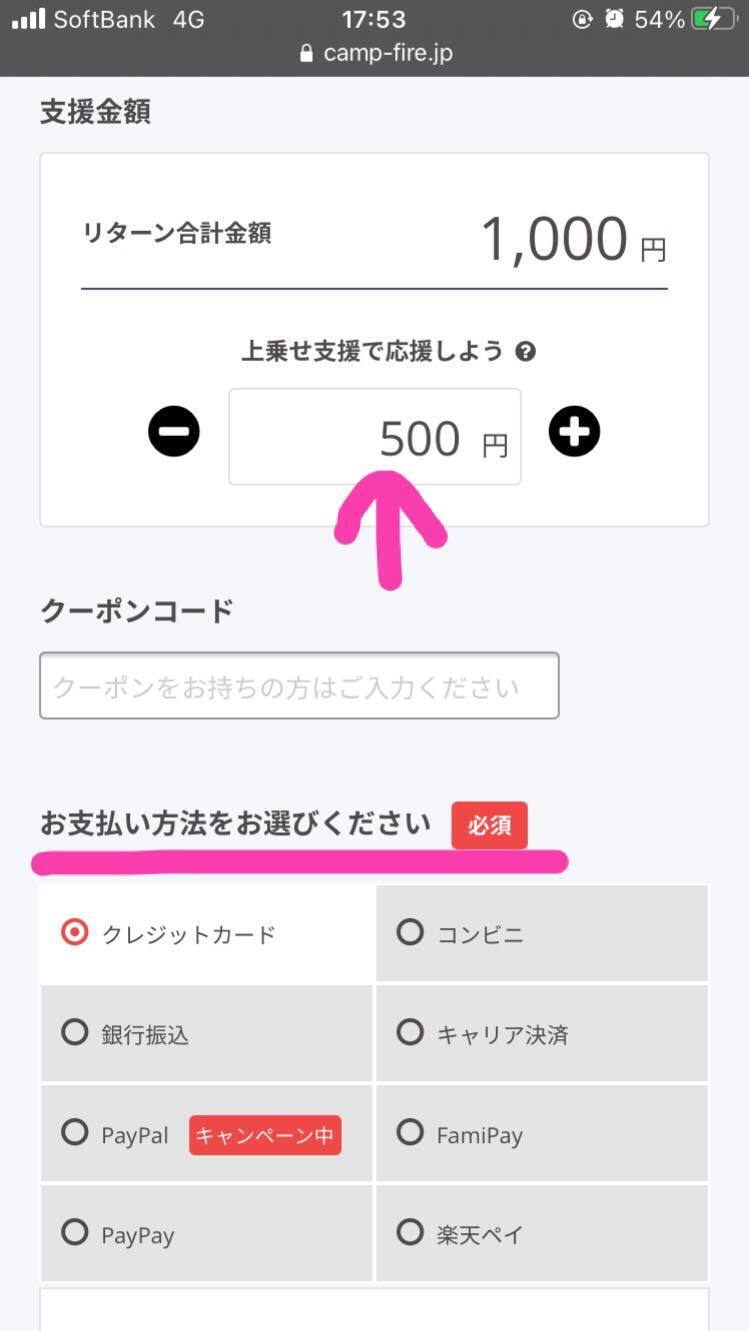 →支援金額欄の-と+で支援金額ご変更可能です。
