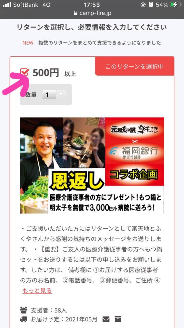 もつ鍋の送り先がなくても、ご支援は受け付けております。