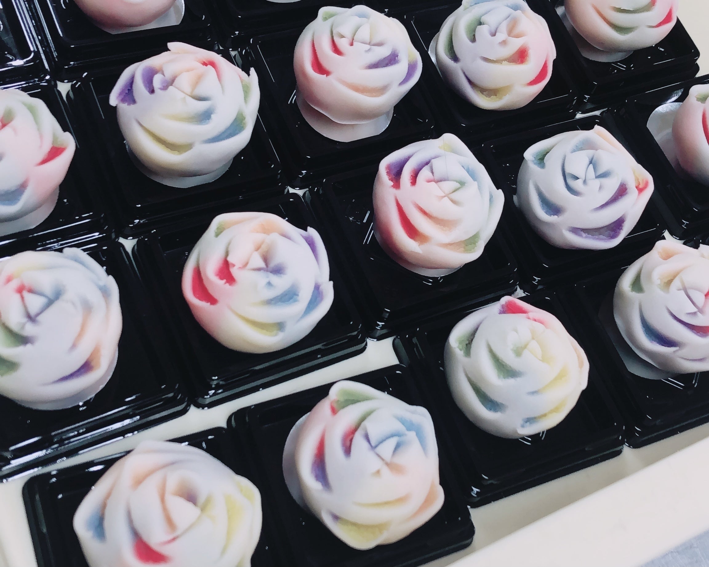 *練り切りについて:季節の風物などを写しとって作られる芸術的な和菓子で、白あんとつなぎを混ぜ合わせた生地から作られます。お祝いの席や特別なお客様へのおもてなしのお菓子としても利用されています。