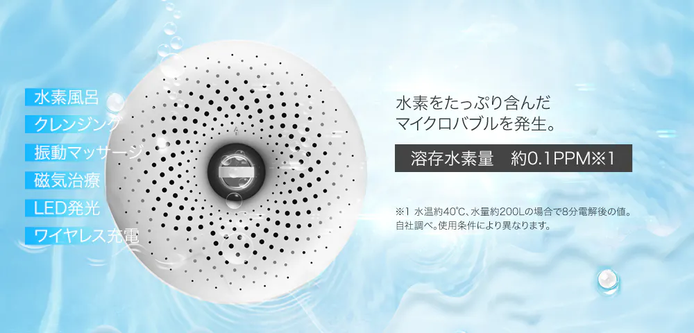 電極を最適配列することで、1分間に約3億個以上の水素のバブルを生成。浴槽全体に水素を満たします。