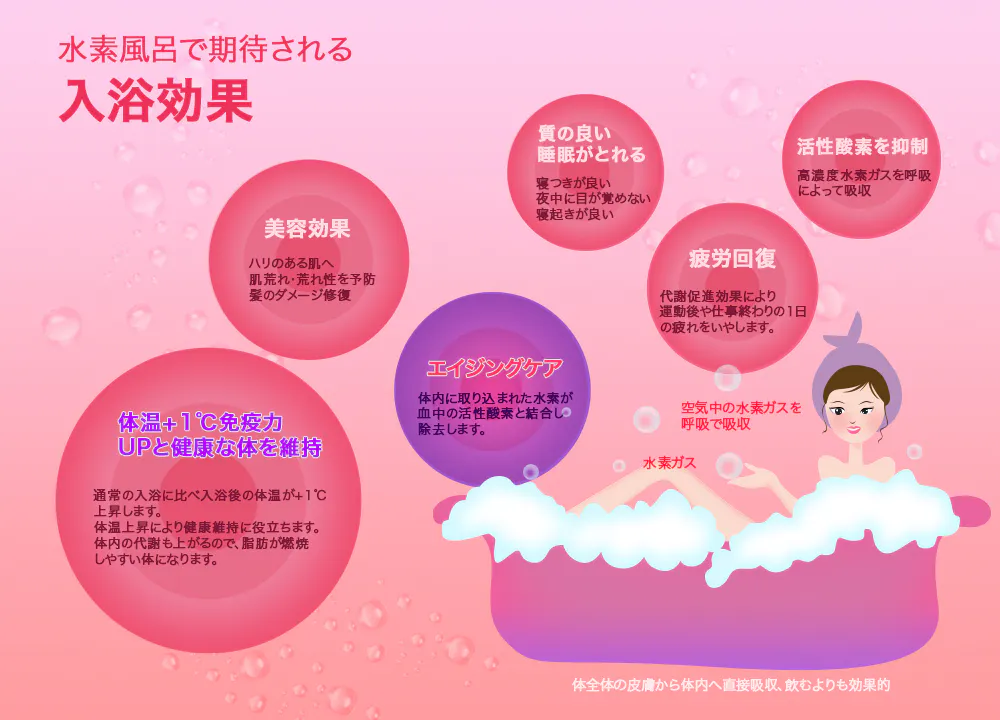①水素は飲む時代から、お風呂で皮膚吸収+肺吸収で取り込む時代です。