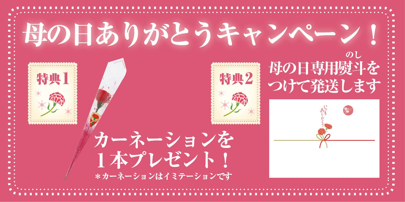 そして、母の日特別セットには「カーネーション(イミテーション)」と「母の日専用熨斗(のし)」がつきます!!