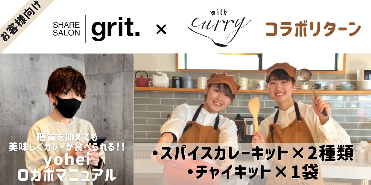 \コラボリターン/【お客様向け/5,000円】スパイスカレーキット2種類+チャイキット+yoheiロカボマニュアル!「あなたを家でひとりにさせないカレー屋さん」がコンセプトの福島県食材地産地消カレーショップ”withcurry”とgrit.のコラボリターン。