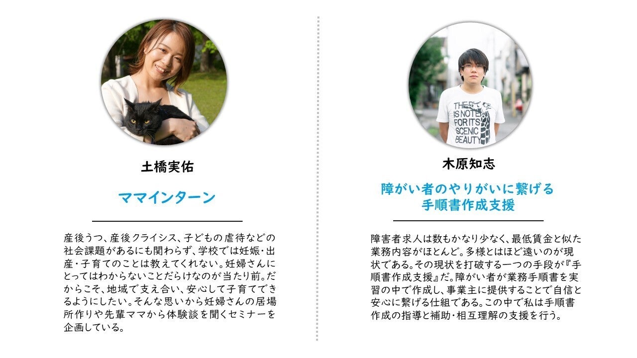 ※ここに書いてあるファイナリストたちアイデアは現時点のものとなります。想いを持って進めていく段階で手法を変えていくファイナリストもいます。