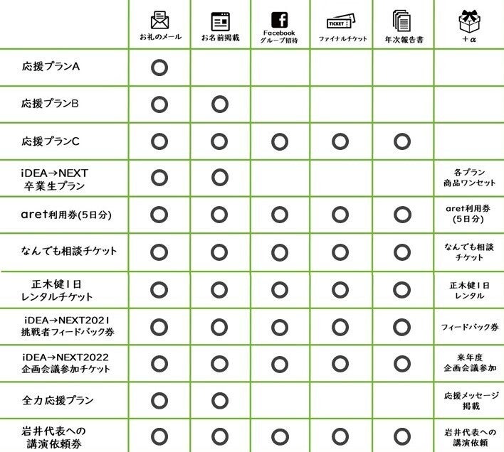 2021/07/27 15:51【クラウドファンディングの結果のご報告】【リターン発送開始のお知らせ】7月16日に終了したiDEA→NEXT2021のクラウドファンディングは、最終的に支援額1,600,000円・支援者162名という結果となりました。そこにクレジットカード・現金等の寄付(894,011円)を合計すると、総支援額2,494,011円・総支援者数231名となります。皆様のご支援とご協力のおかげで当初の目標金額である2,000,000円を突破することができました。「挑戦が循環する社会」の実現に向けて、皆様の想いと共にこれからも進んでいきます。改めてスタッフ一同感謝申し上げます。クラウドファンディングのリターンに関しては、徐々に発送をしております。メールで送付させていただいているものもあるので、ご確認いただければ幸いです。お届けまでに時間を要してしまうものもあるかと思いますが、確実にお届けいたしますので、今しばらくお待ち下さいませ。 もっと見る人気順1位ありがとうございます