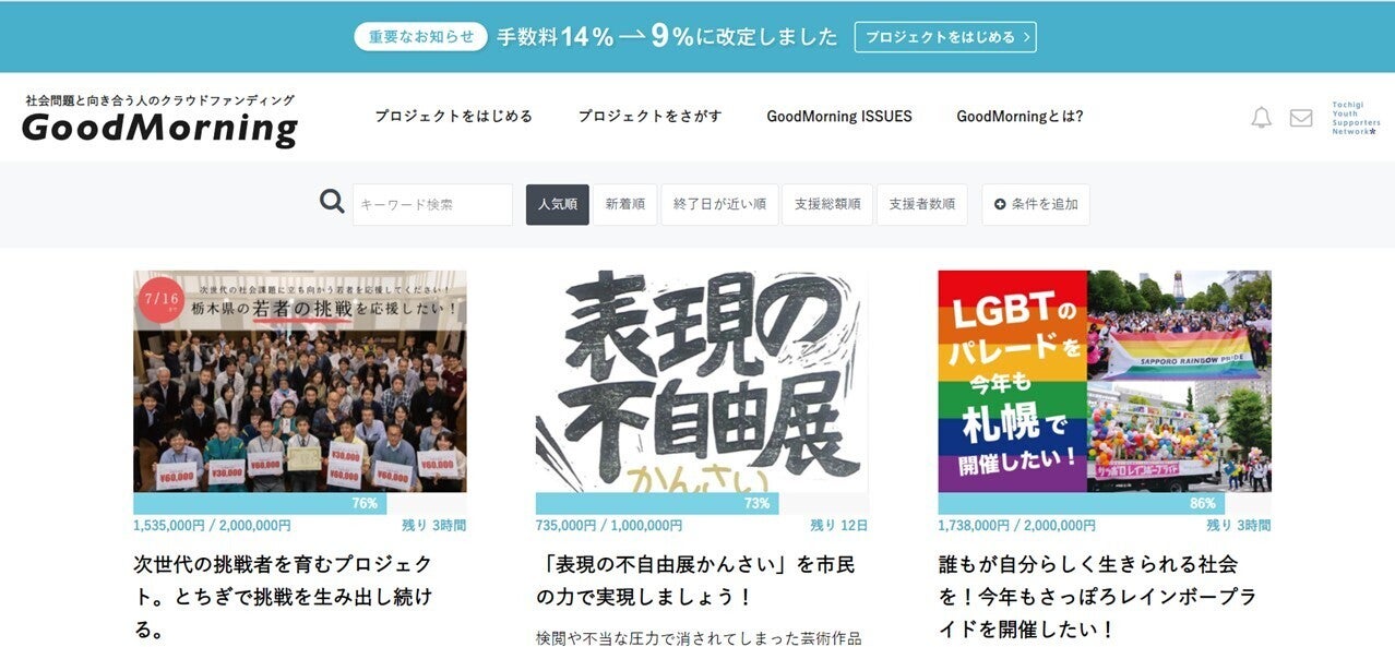 私たちのプロジェクトがGood Morningの人気順1位となりました。皆様、応援本当にありがとうございます。