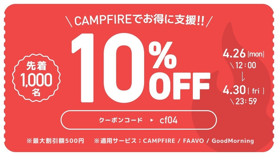 あと3日で終了!リターン2つ追加!今だとクーポン使えます!!
