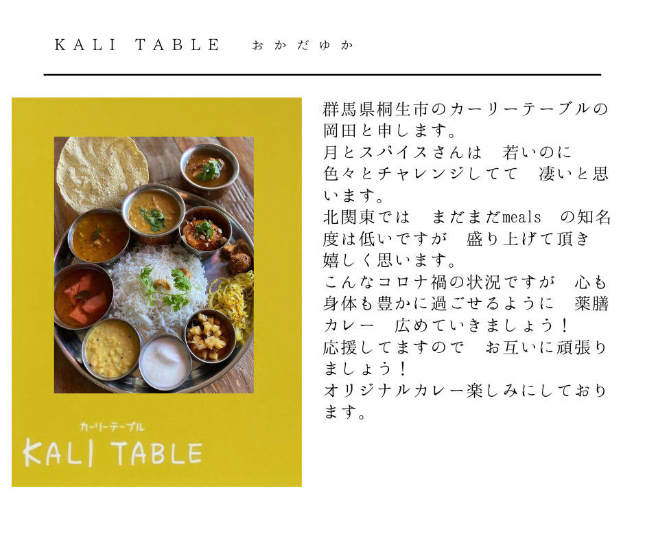 月とスパイスはこれからも心と体が整うようなカレーを作り続け、喜びや楽しさを感じてもらえるような食のエンターテイメントを提供していきたいと思います。