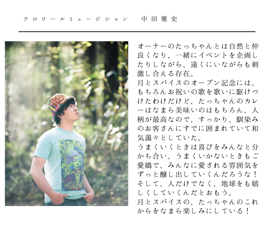 これからも月とスパイスは皆様の健康を支えるカレーを作り、疲れた時には安らぎや癒しをもたらす「心の拠り所」であり続けたいと思います。
