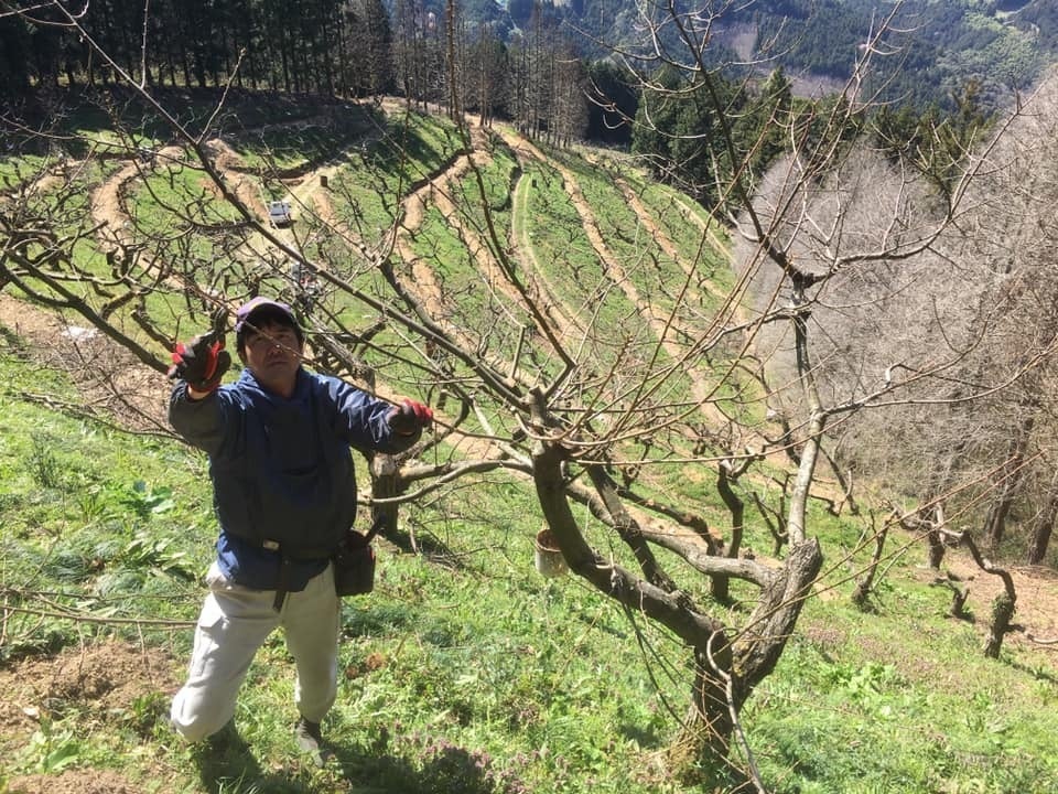 枝と枝の距離を1メートル以上あけ、大好きな太陽の光が、しっかりと一本一本の枝、葉に当たるのです。そして、のびのびと育ち栄養をつけ、大きな立派な実をつけるのです。