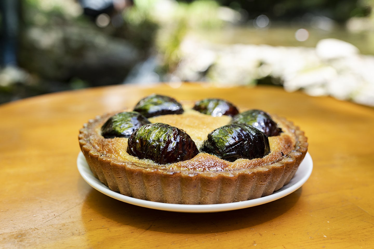 今回のスイーツは、完熟石畳栗の本来の美味しさをそのままに表現できるタルトをチョイス。フォルムの美しさ、美味しさをそのままに完熟石畳栗タルトをお届けします。
