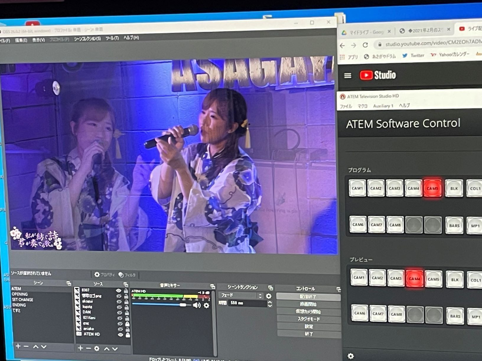 あさがやドラムは昨年、ライブハウスからの配信を可能にすべく、映像配信に特化したパソコン、カメラ、スイッチャーなどを導入。スタッフと、コロナ禍でもステージに立っていただける出演者のみなさまと、で毎日の試行錯誤を行なってまいりました。YouTubeの無料配信を中心に、ツイキャスの有料配信にも対応してさまざまなライブ、イベント企画を生配信してきました。