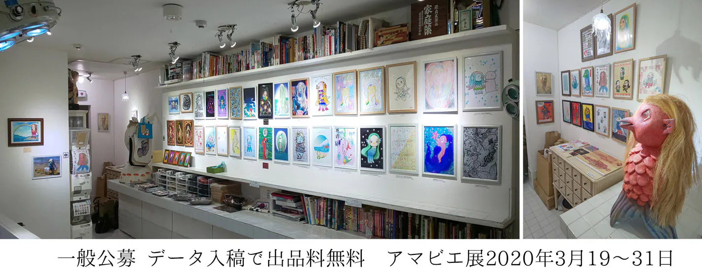 その後も毎年の様にここでは言えないような、全く想像もつかない災難に見舞われ、ギリギリの状態の上、コロナ様がやってきて、ヤケクソ気味に思い立って10日で実現した出品料0円の「アマビエ展」を開催すると、自分の想像を優に超えた、60点以上の作品が集まりました。嬉しかったです。