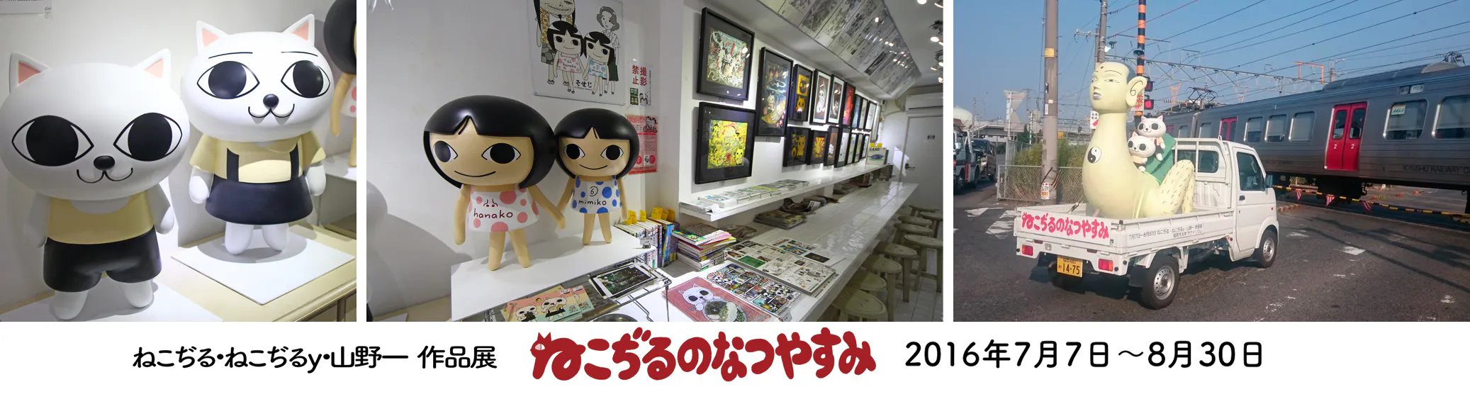 1、今までの展示でお世話になった作家様、ねこぢるy先生、くまみね先生、西塚em先生、竹崎陽子先生方の協力で製作の許可を頂けた、ジークレー複製画