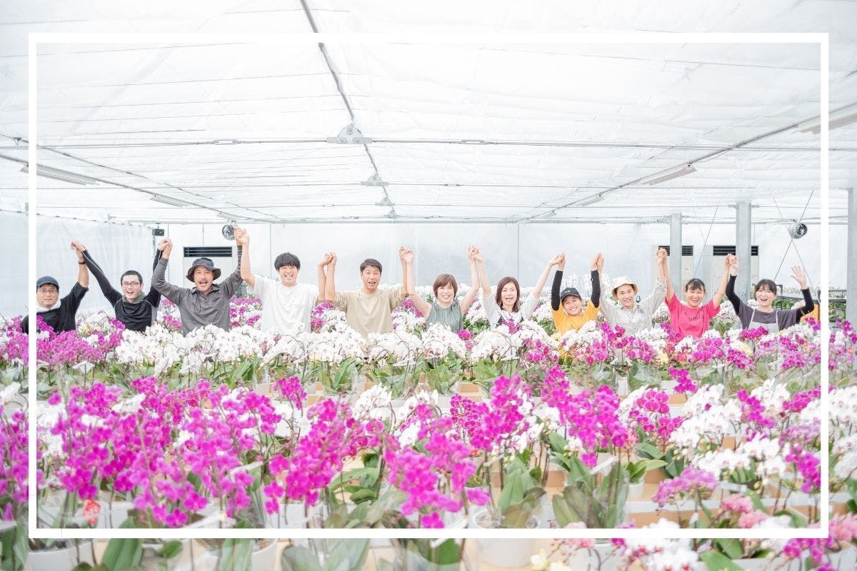 家業は3代続く胡蝶蘭農家で、現在は父と二人三脚で蘭の他、みかん、パッションフルーツなどの栽培を行っています。高校卒業後は、理学療法士を目指しておりましたが、家業が農家であったこともあり、自然と農業に興味を持ち19歳から父の手伝いを始めました。