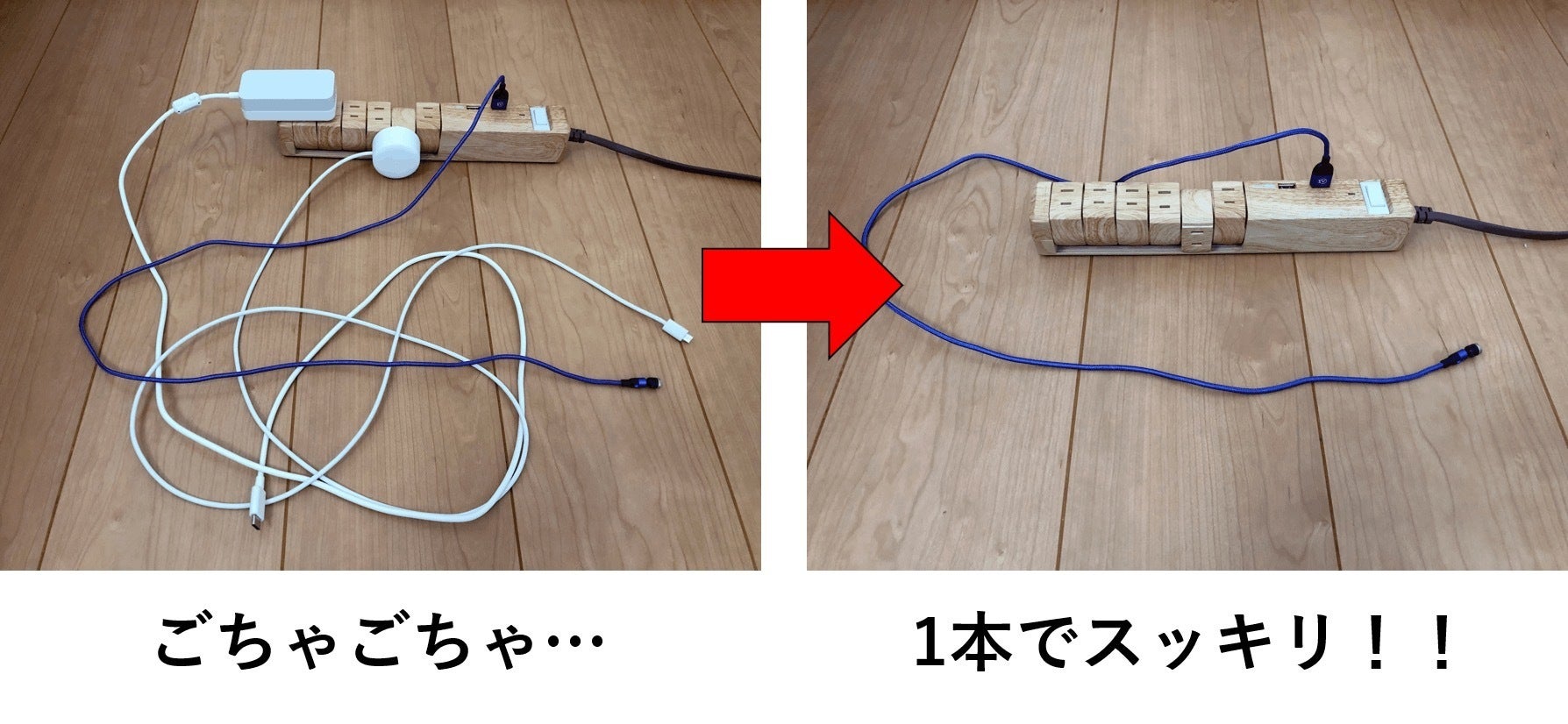 そのため、いくつものケーブルが必要になりコンセントにコードだらけでごちゃごちゃ…見た目にも良いものではないですよね?