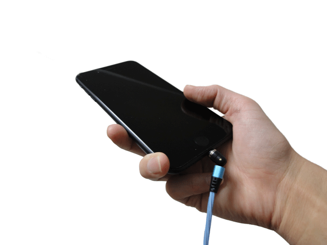 この充電ケーブルは、コネクタ部分を予め機器に装着しておき、充電する時はコードを近づけるだけでマグネットでカチッと接続され、充電が開始されます!
