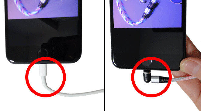 このケーブルの一番の特徴は接続部分を自由に動かせることです!