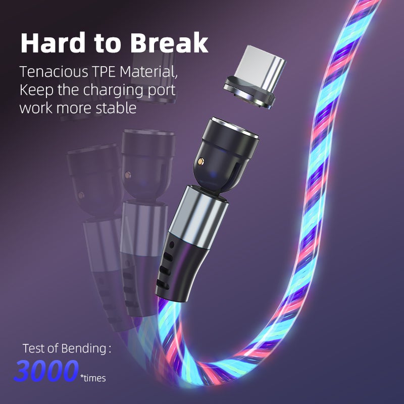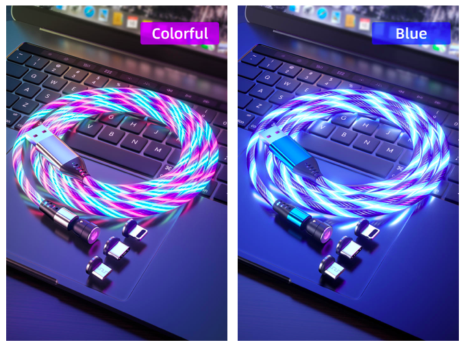 このケーブルは光りながら最大3A高速充電&データ転送が同時にできるという今までになかった面白いケーブルです!