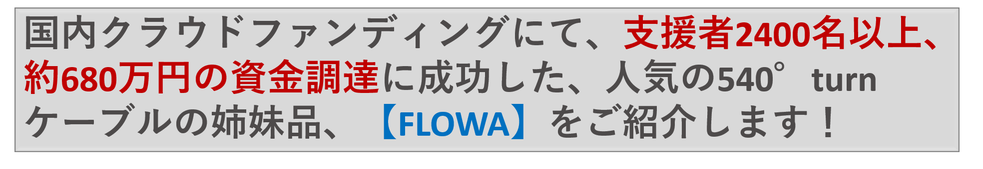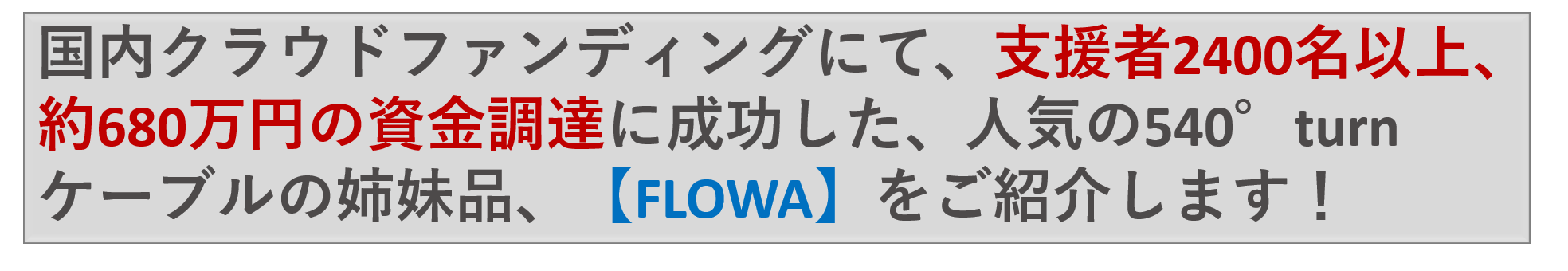 長引くコロナ禍の中、世の中は明るくないニュースばかりですが、ケーブルの明るい光と共に少しでも希望の光となりましたらという願いを込めております。FLOWAを試してみたい、面白いプロジェクトと思って頂けましたら幸いです。