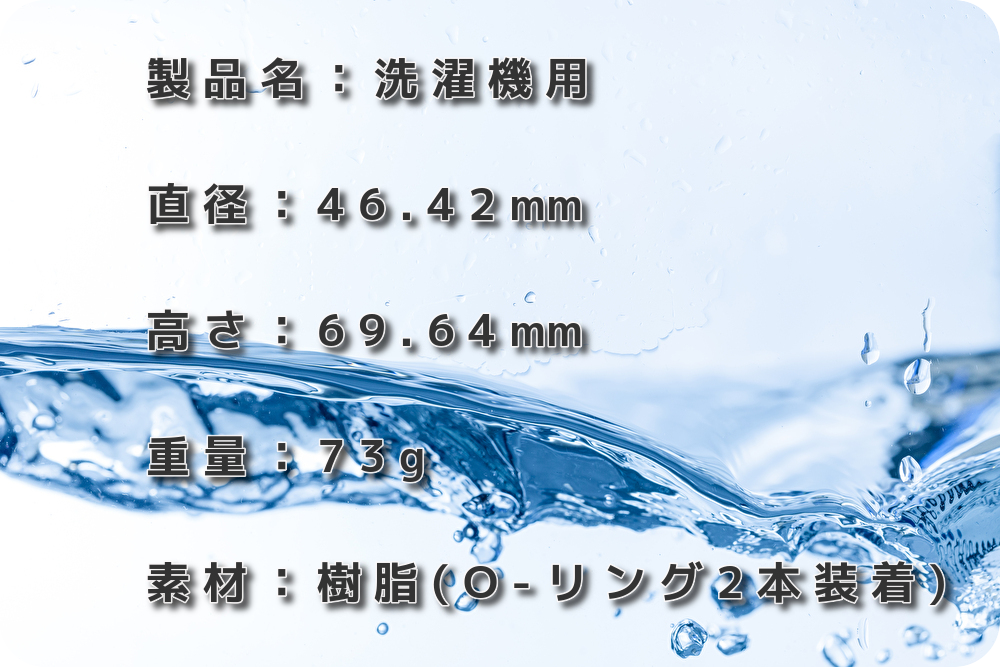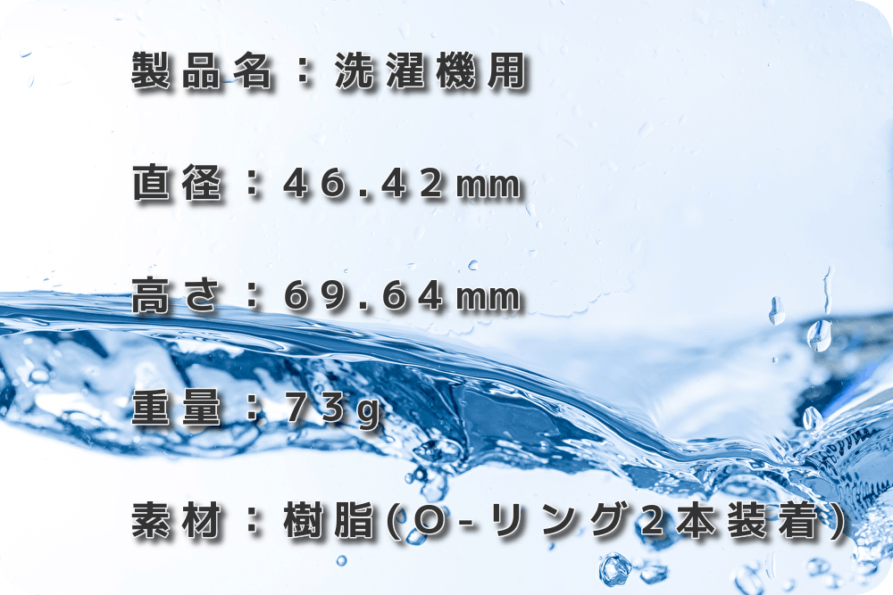 洗濯機用を検討しています。 2点確認したい点があります。 ・Oリングは市販品で流用可能ですか、また型式指定はありますか? ・流量はどれくらい低下しますか。 具体的な数値があるとわかりやすいです。 (例:60ℓ洗濯機の満水時間が設置前と後で何分遅くなります