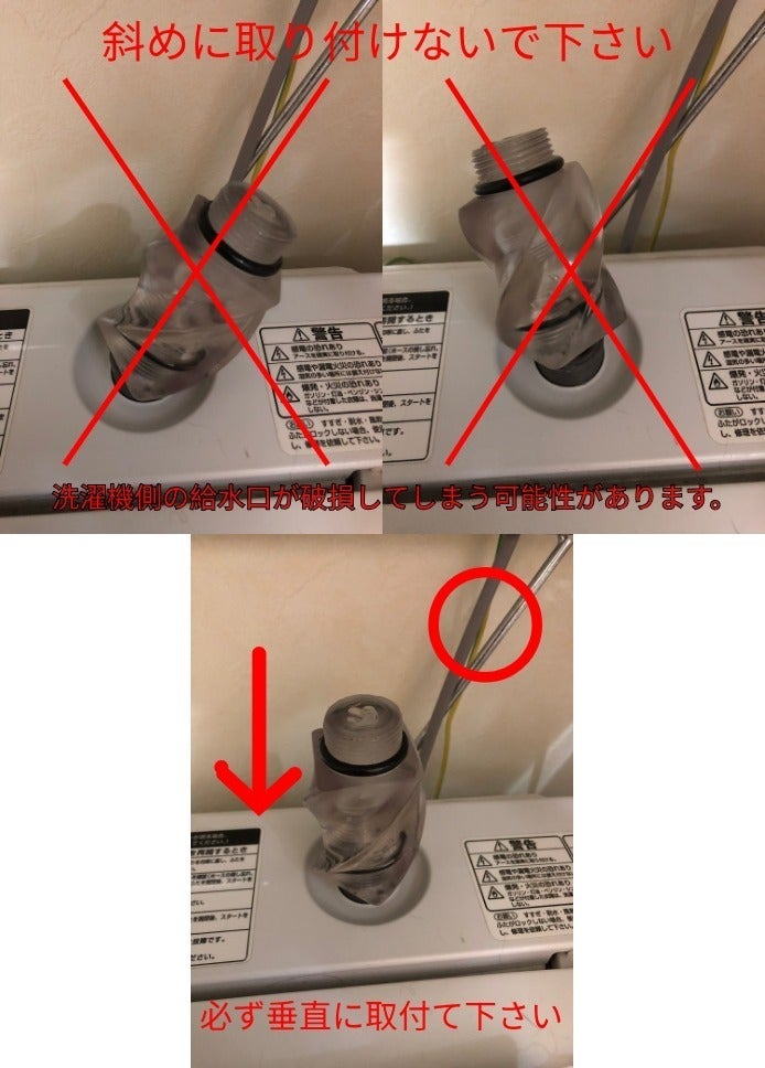 <<<洗濯機の「蛇口(水栓)」は必ず「止」に切り替えてから本製品を取り付け下さい>>>