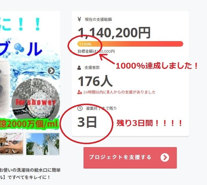 支援者様のおかげで達成率1000%を超えることが出来ました。5月26日に開始したプロジェクトがここまで大幅にご支援して頂けた事に感謝しております。ご支援して頂いた方々、お気に入りに登録されている方々、誠にありがとうございます。終了まで残り3日間になりました。※終了日は6月26日 23:59になります。最後までぜひよろしくお願い致します。