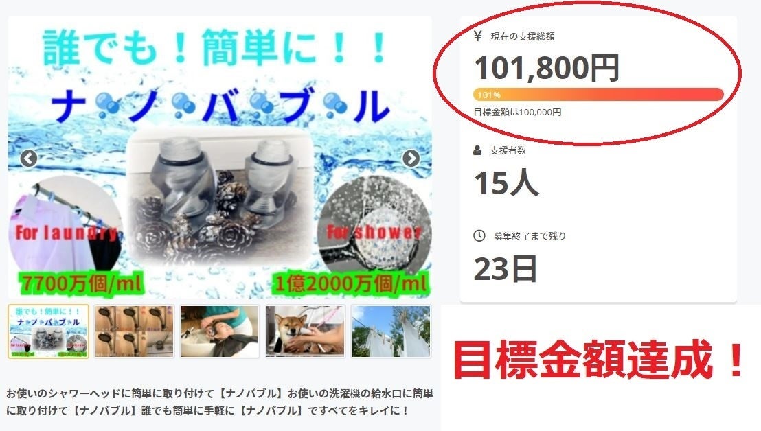 皆さまのご支援のおかげで目標金額を達成致しました。この度は誠にありがとうございました。残り23日間ですが、どうぞ最後までよろしくお願い致します。