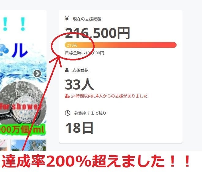 達成率200%を超えることが出来ました。5月26日に開始して7日後の6月2日に目標金額(達成率100%)を超えました。更に5日後の6月7日の時点でその2倍の200%を超えることが出来ました。この結果は全て皆さまのご支援のおかげです。誠にありがとうございます。残り18日間ですが、最後までよろしくお願い致します。