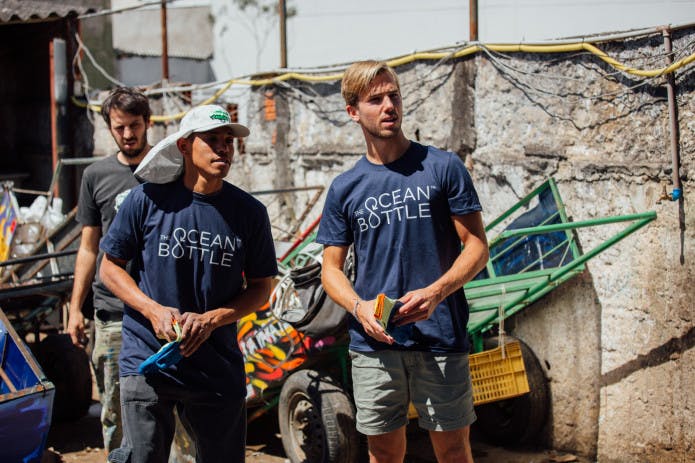 共同創設者のWillはインド洋で甲板員として働いていました。その際に彼はプラスチック汚染の影響を直に見たのです。彼はその時に解決策を見つけることに集中することを決めました。大学院では海洋プラスチック汚染にインパクトを与えることを決断していた3人に会いました。そこで一つの可能性のある解決策に導きました:一度きりのみ直そうとするのではなく、問題の根元に働きかけるシステムを作り上げることです。何回にも及ぶブレインストームのセッションを経てオーシャンボトルが誕生したのです。