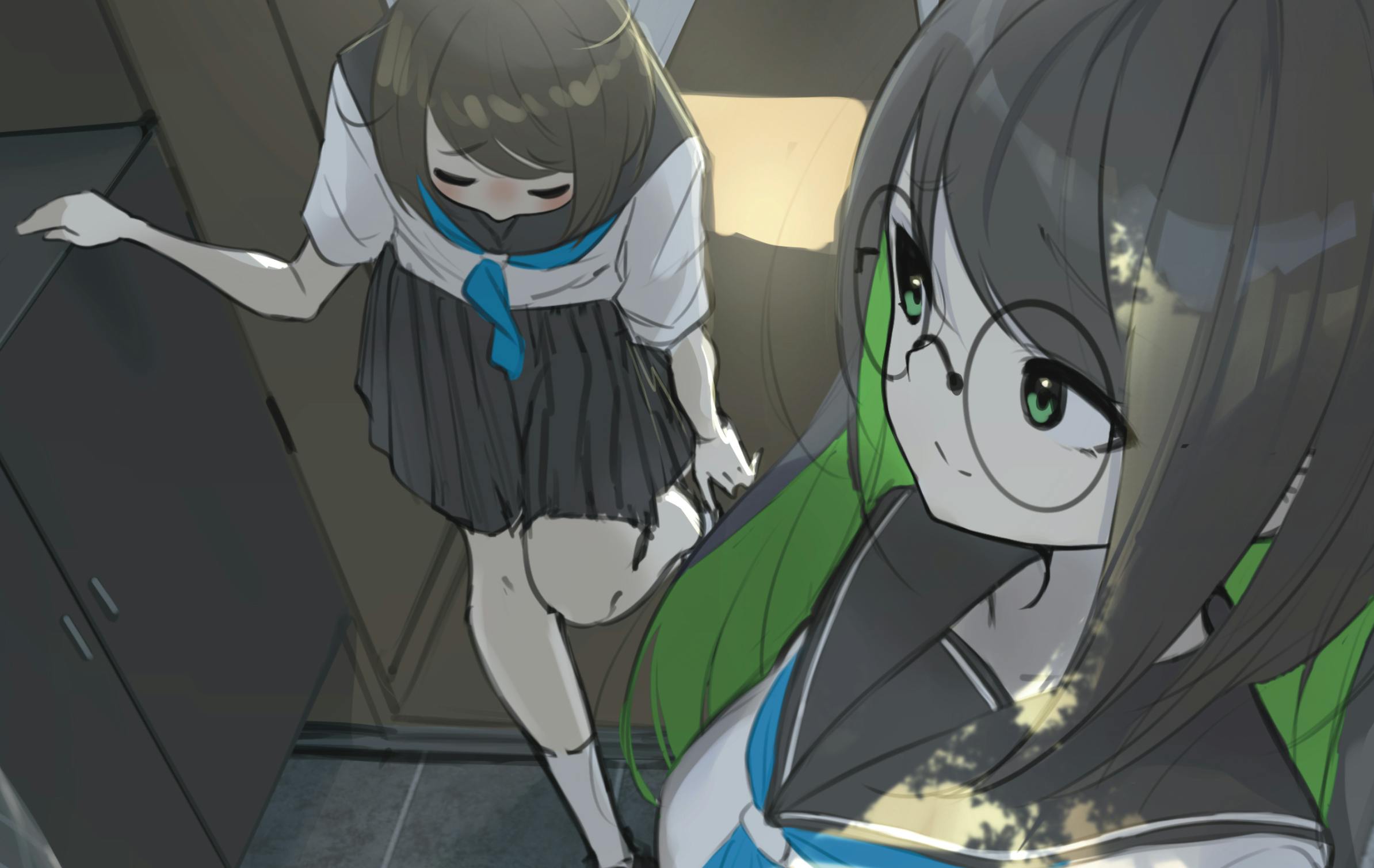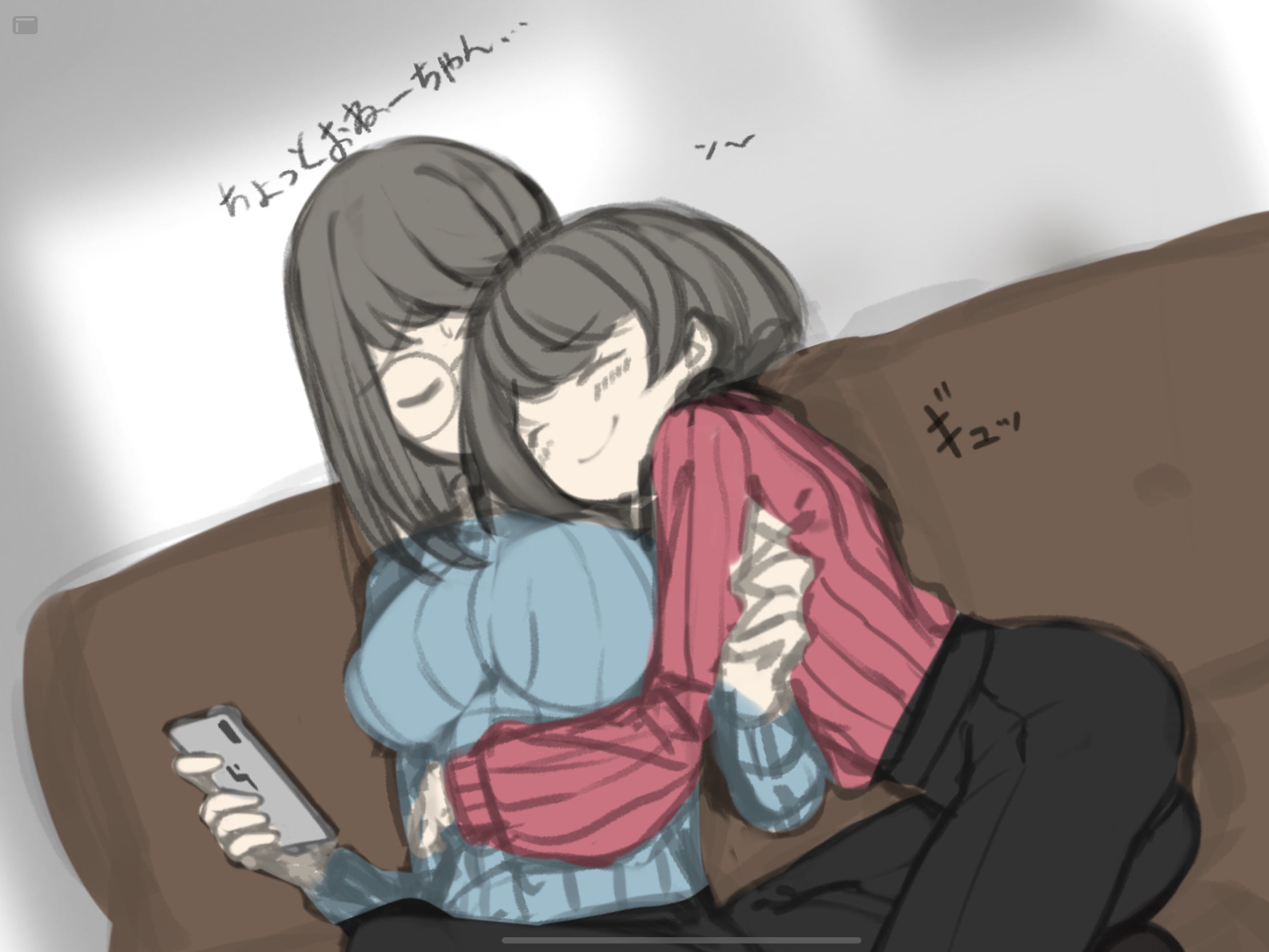 いつもべったりな姉に塩対応なストレートロングメガネの女の子(高2)、姉より高身長。