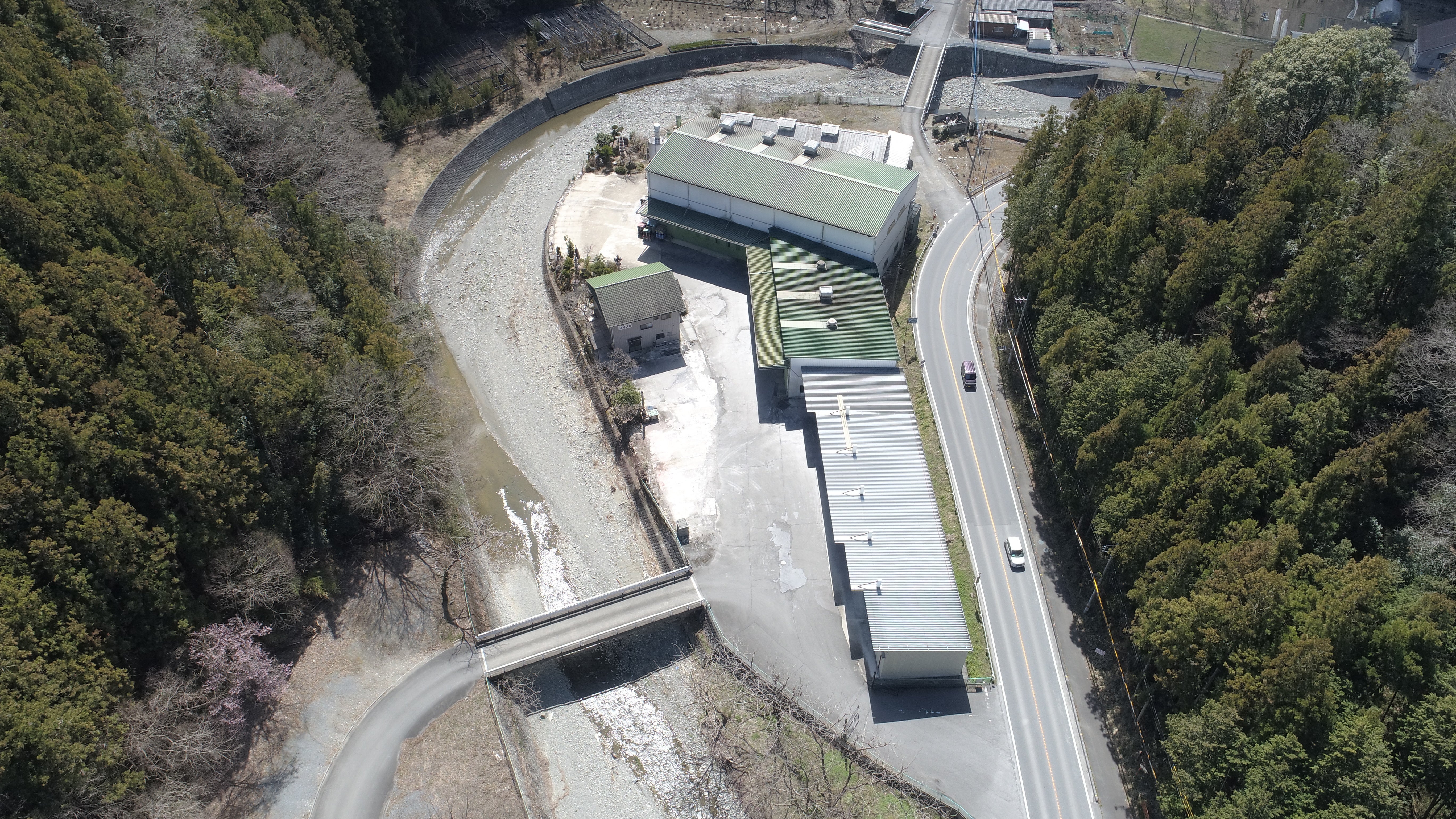 倉庫沿いに綺麗な小山川が流れています。