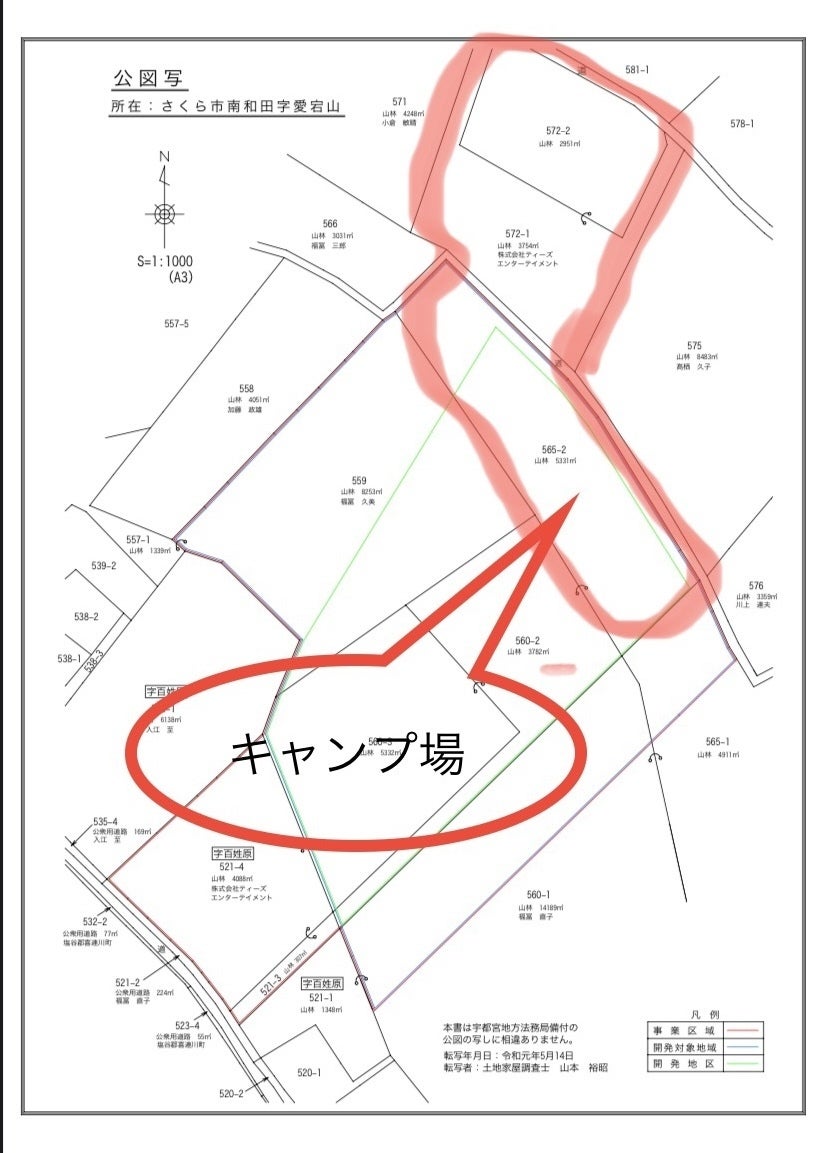 栃木県さくら市南和田字愛宕山 572-1 572-2 560-2 565-2 (約4,800坪)