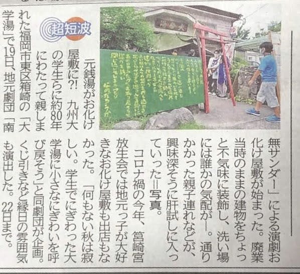 "元銭湯がお化け屋敷に不気味な装飾 洗い場に気配が…"西日本新聞掲載記事