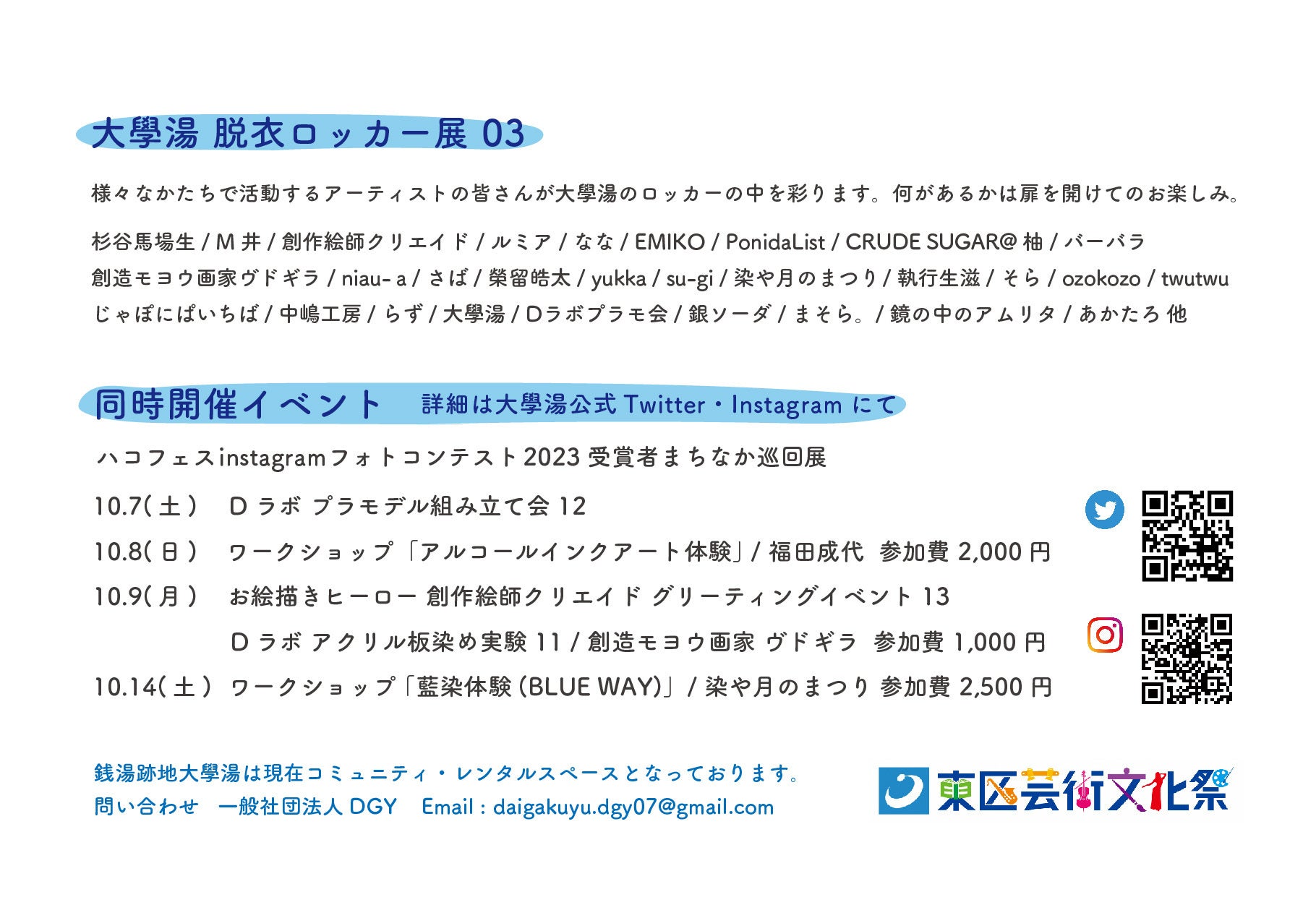 現在リニューアル2周年企画のオープンハウスが開催中です。たくさんのアーティストをはじめとする大學湯の新たな可能性をひろげてくださる皆さんと共鳴する空間をお楽しみください。