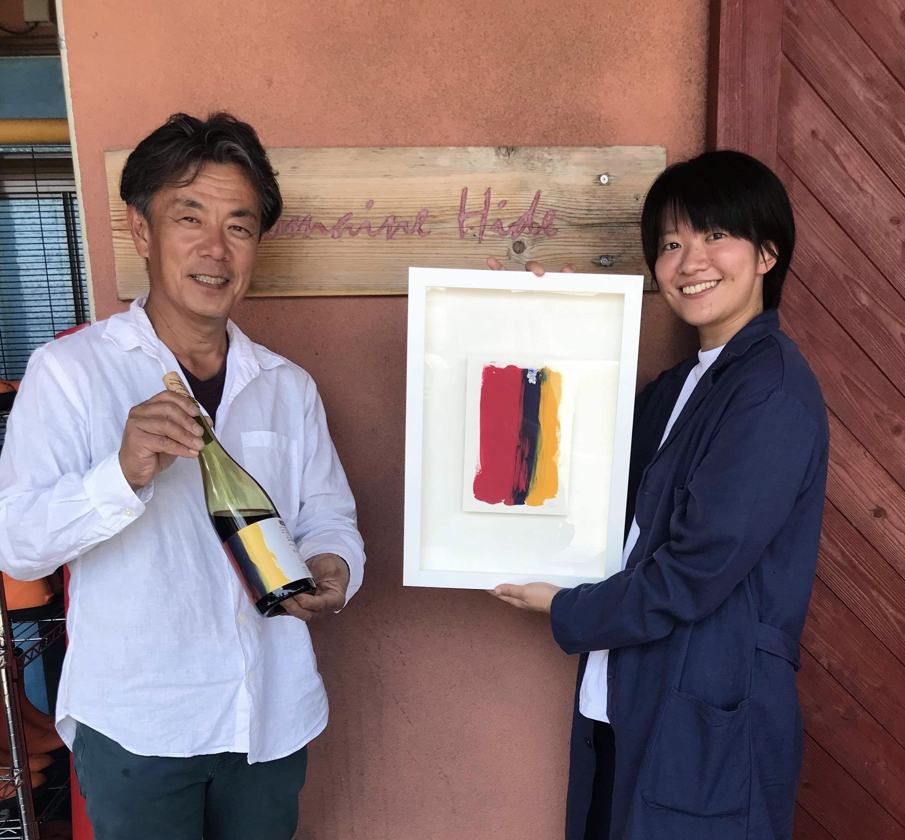 こんにちは。プロジェクトメンバーの銀ソーダです。本日はリターン品にもなった、銀ソーダ × ドメーヌ ヒデ アートラベルワインのお話です。6/15(火)に山梨・南アルプス市のワイナリードメーヌヒデにお伺いしました。世界的にも評価されているワイナリーでもあり、銀ソーダの作品がワインラベルになったArt Label 2018もドメーヌヒデ製です。作家支援のためにも企画されたアートワインラベルということで、銀ソーダの展示会や大學湯のクラウドファンディングのリターン品などに沢山のご協力を頂きました。581本限定数のワインといこともあり、13本のワインのご協力をいただきました。ありがとうございます。アートラベルワイン企画に応募しようと思った理由のひとつに、ドメーヌヒデの渋谷英雄さんのワインに対する情熱があります。企画に携わっている二階堂広人さんを通じて、映像にてワイナリー見学をさせて頂きました。映像からも伝わる渋谷さんの情熱は、青い炎のようでした。是非直接お伺いしたいと思い、今回訪問して改めて渋谷さんの情熱を感じることができました。応募した作品は珍しくGinsodaBlueではありません。色の三原色を使用したい衝動に駆られました。Art Label 2018 のラベルデザインについて 「人生の大切なひととき」をコンセプトに、限りある時間と記憶の重なりを黄(月や陽の光)、青 (空や海)、赤(果実や情熱)の 3 色で表しています。 WHINE WHAT 掲載ドメーヌ ヒデ アートラベルシリーズ 発売 南アルプスのマスカットベーリーA 100%今回感動したものはたくさんあり、山梨の自然にも魅了されました。青い空と白い雲が私たちを包み込みます。広大な自然のもとで育ったマスカット・ベーリーAは青に包まれていたのだと実感しました。マスカットベーリーAの畑リターン品のアートラベルワインコースはクラウドファンディング初日で満員となりました。今回のアートラベルワインは熟成も楽しむワインということもあり、銀ソーダの展示会やイベントを通じて限定的に取り扱う予定です。今後の予定は7月に銀ソーダ東京個展の際にトークイベントを開催予定です。12月には修繕後の「大學湯」での銀ソーダ個展の際にイベントを計画しております。詳細が決まり次第「大學湯」Instagramなどで告知させていただきます。ワインと銀ソーダの世界観の熟成を今後とも楽しんでいただけますと幸いです。