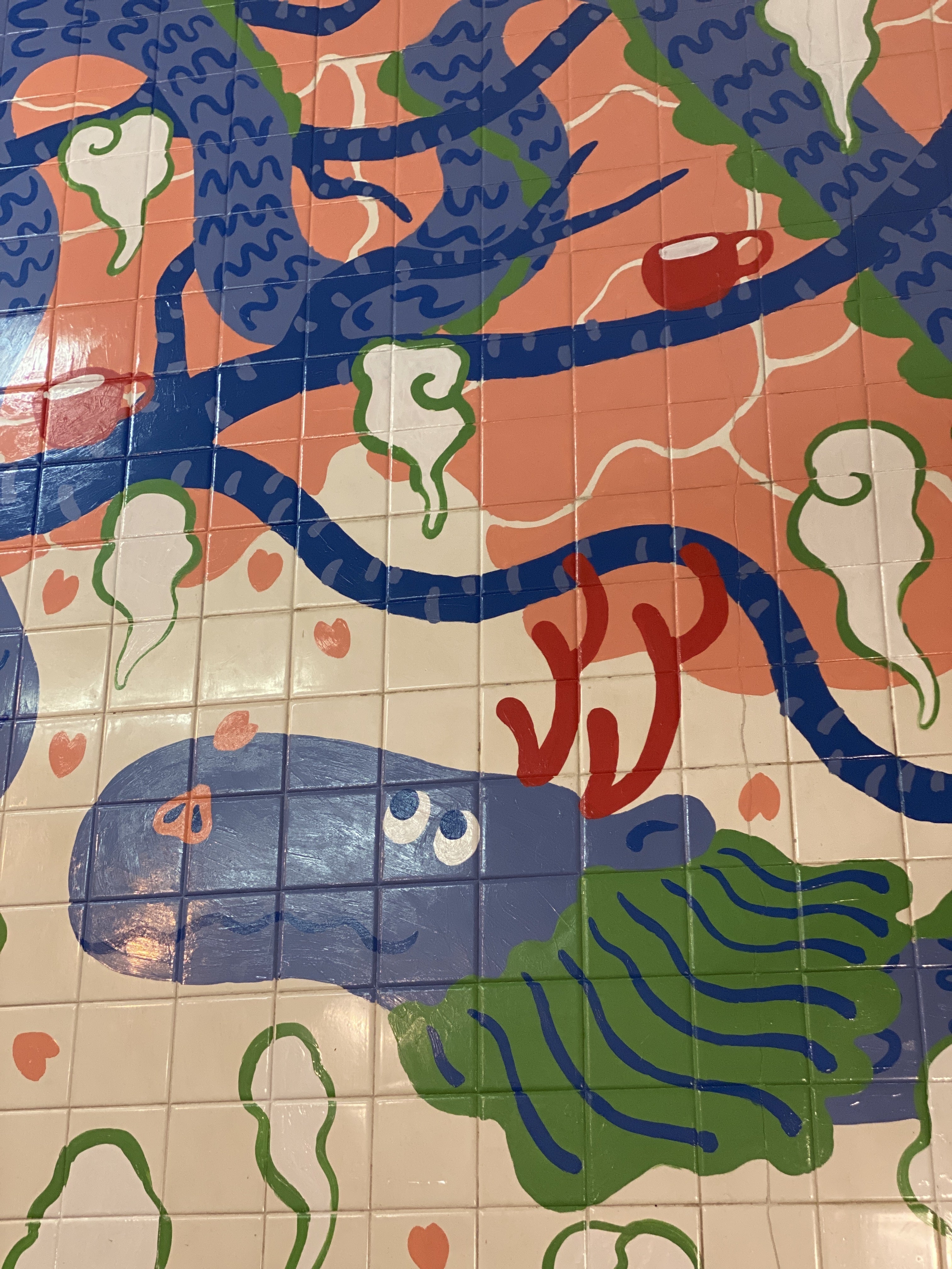一方で、多度津町で唯一のかがわ暮らし応援隊として委嘱されている者として、一人でも多くの人々に多度津町を知ってもらいたい、もっと知ってもらうためにはどうしたらいいか?そんな風に考えるたび、やっぱり観光をテーマにきっかけ作りしかないなぁ〜と、しみじみ思います。そう願い踏ん張って来た藝術喫茶清水温泉も、3周年の記念日(5/26)をあと僅かで迎えます。あと30分で5/26になります。湯船席に座り壁画を撮って見たら、変わらぬ青い龍が微笑んでいました。