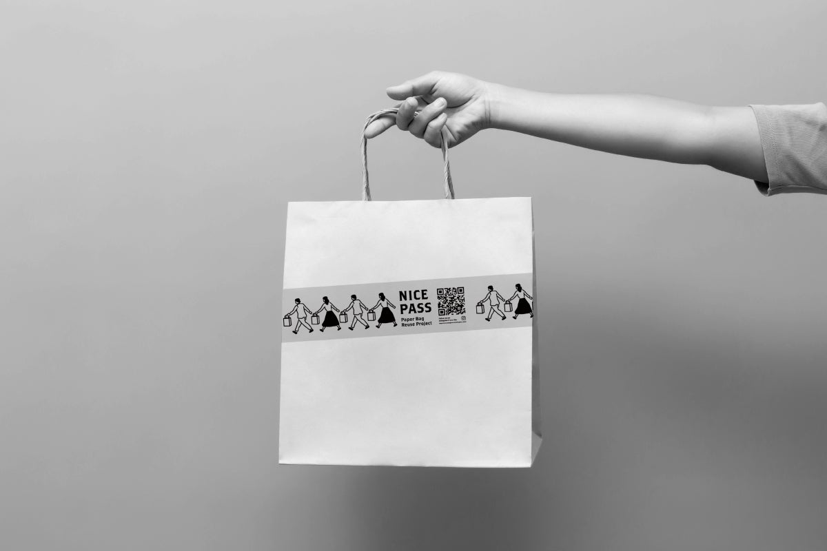 ナイスパスはエコな取り組みですが、ビジネスにも優しい取り組みだと思います。ブランドロゴの入った紙袋じゃなくてもいいときはきっとあります。