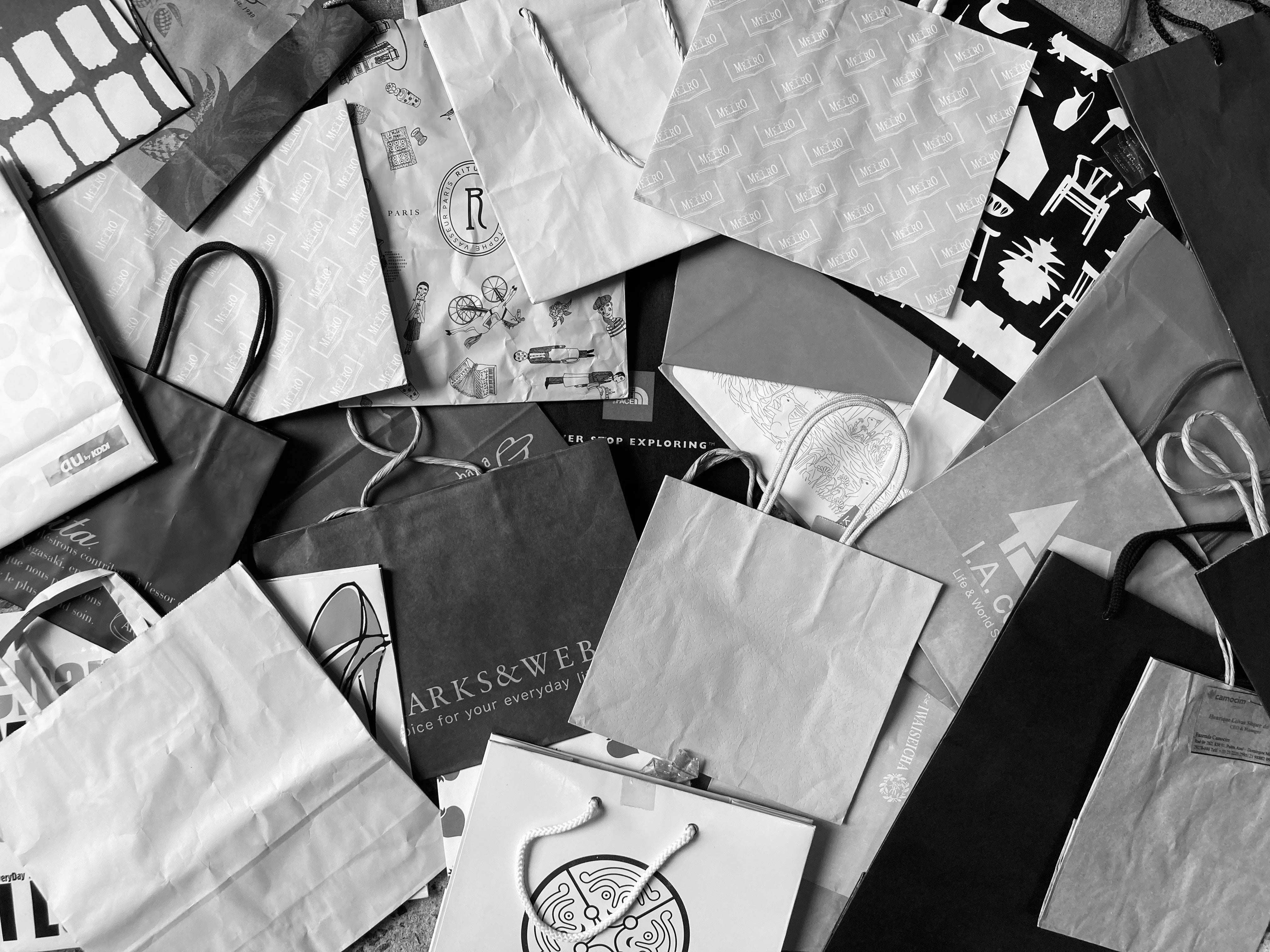 お店の紙袋はブランドごとにデザインされたものも多く、それらのデザインもステッカーでカスタムされながら再利用されます。さらに印刷時に使用されたインクもその対象となるでしょう。