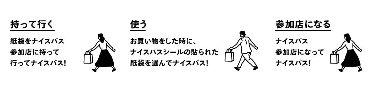 ナイスパスのシールを貼ったショッパーを持つ、ナイスパスに袋を提供することが、かっこいいことに。
