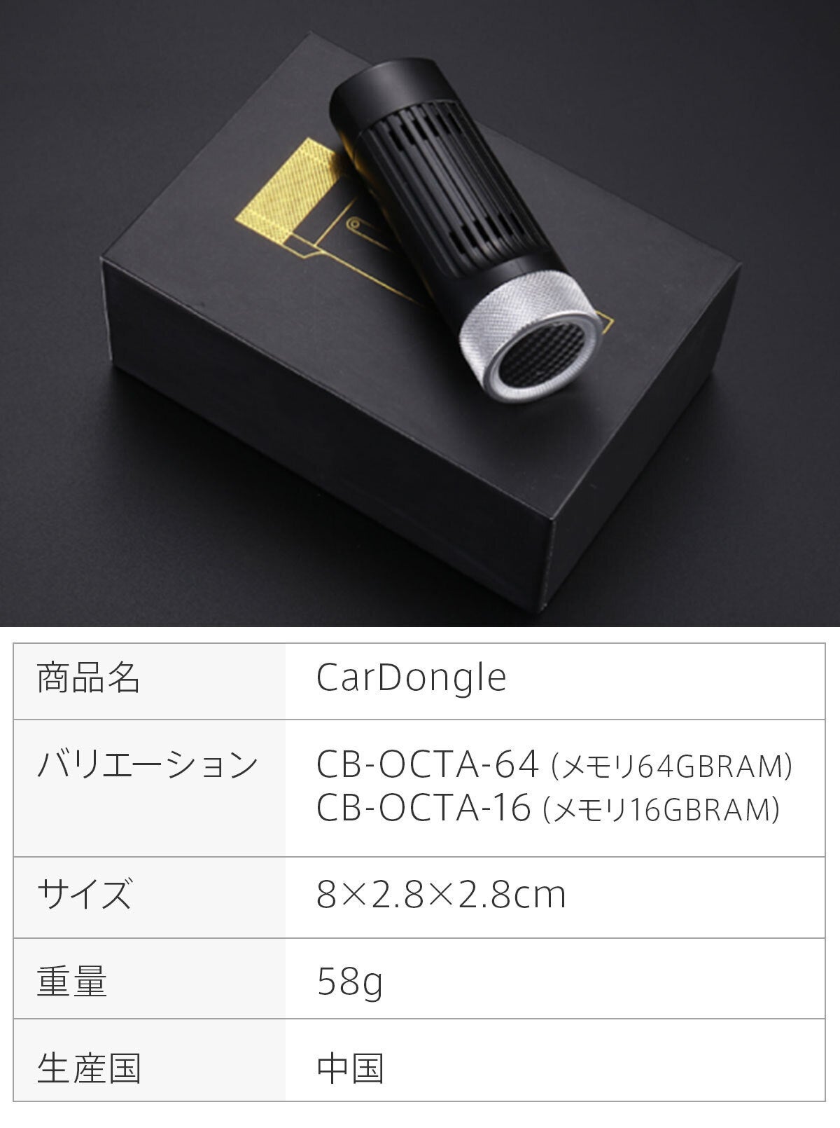 【CarDongle】の本体に2.0GhzのCPUと最大64GBのメモリを内蔵し小型PC並みの高性能化を実現します。