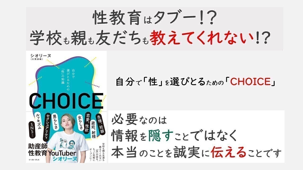 著書「CHOICE」は、性の悩みへのド直球回答の1冊です。