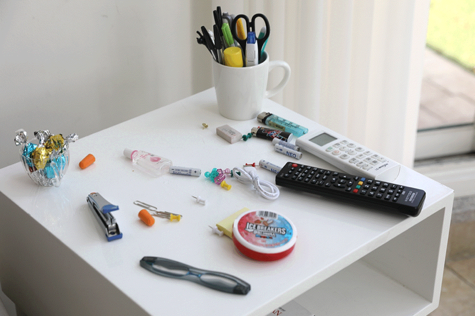 リモコンやちょっとしたお菓子など、一人暮らしのテーブルもスッキリ整頓