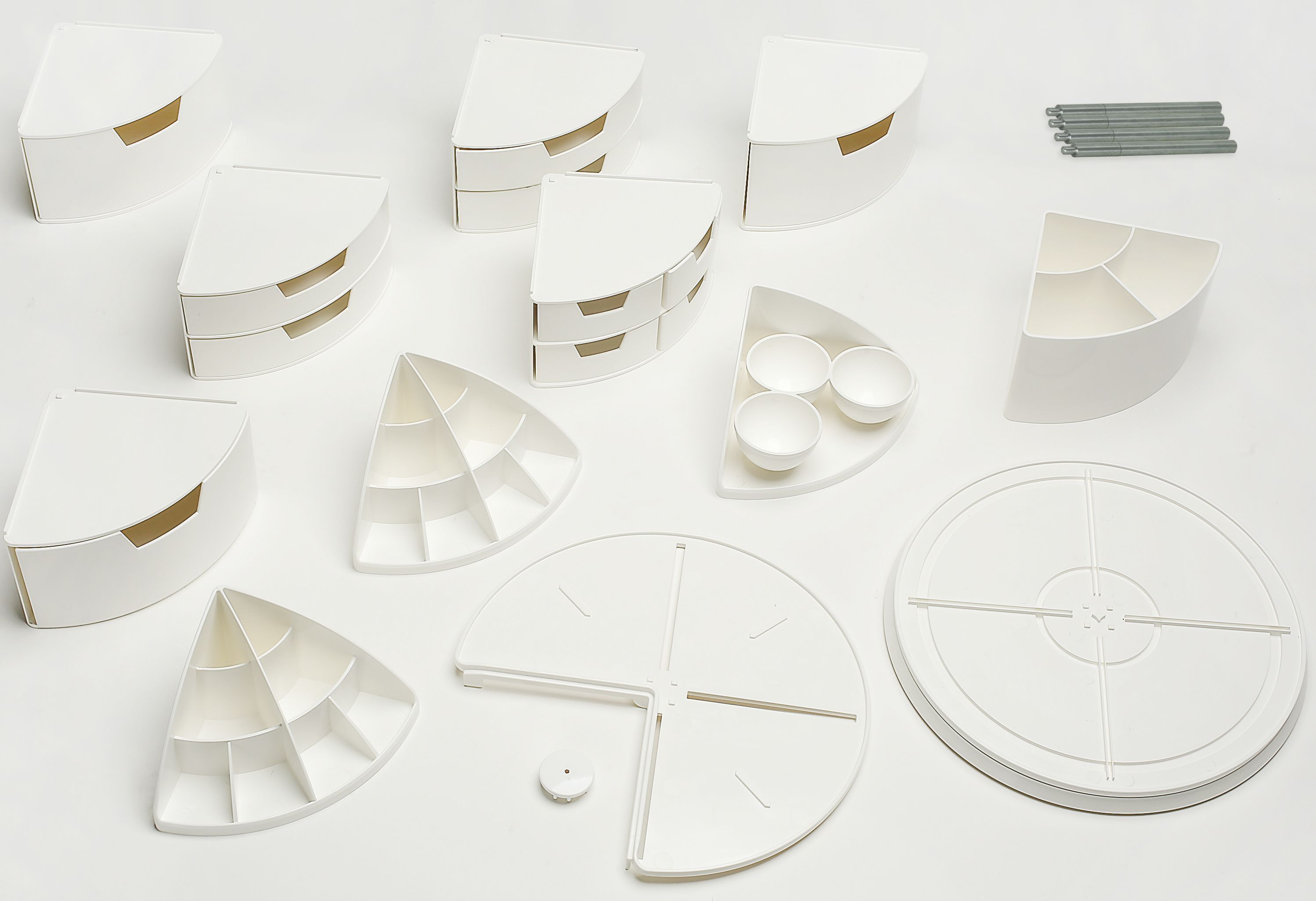3段まで積み重ね可能な構成です。ミニセットの構成をベースに、各種引出しパーツを追加して構成しました。